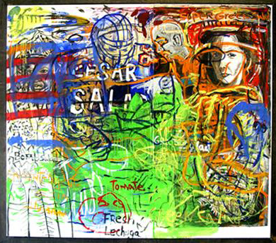 Bomb Salad y Félix Sánchez / Mixta sobre papel / 84″ x 74″