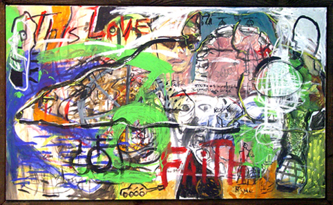 One love / Mixta sobre papel y tela / 69″ x 44.5″